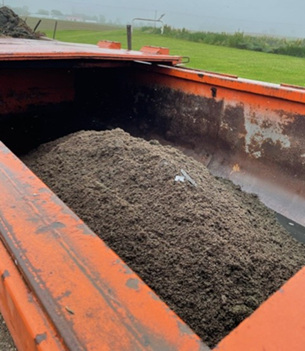 Twenty cubic yards of the initial manure solids were collected for use by a Cleveland off-site taker to investigate its viability as a composting foundational ingredient, while several different off-site takers were sent samples of the final dewatered material containing the recovered phosphorus. An additional three tons of stackable final product were sent to several off-site takers in Allen County, IN for use and evaluation, an additional 20 cubic yards of the geobag containing product were sent to a local farmer for application in a 40 acre wheat field and the remainder of the material (both manure solids and geobag material) were land applied by the host farm.