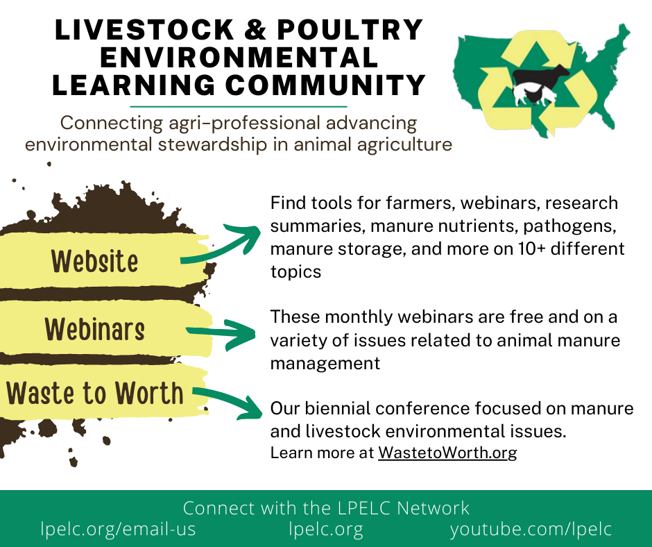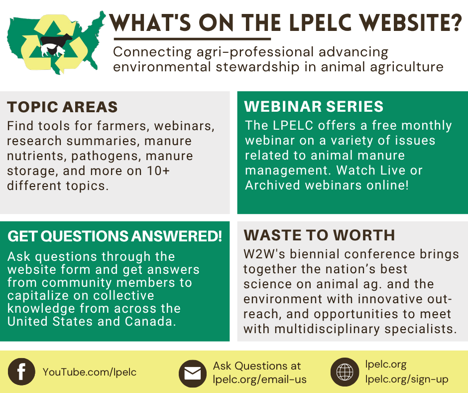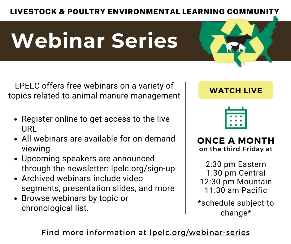 LPELC offers a free monthly webinar on a variety of issues related to animal manure management. Missed a webinar or want to watch past topic? You can find the archived webinars on our website too.
