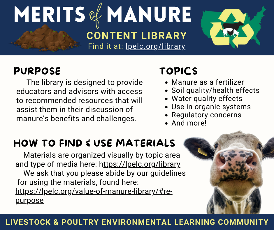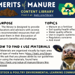 The Merits of Manure Content Library was created to provide educators and advisors with access to recommended resources that will assist them in their discussion of manure’s benefits and challenges.
