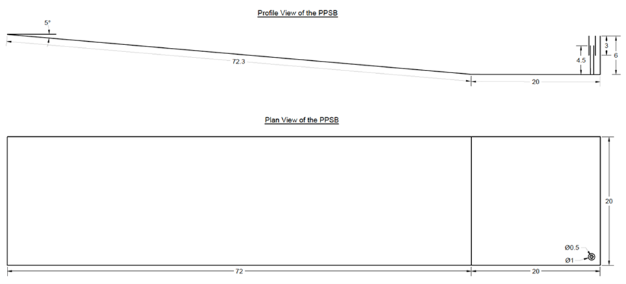 Design details of a working PPSB were documented, and performance evaluation was conducted based on grab samples of the flush and PPSB locations. Critical design considerations for the PPSB including design, hydraulic loading, location of the pull-plug location, and construction details were reported in the Extension publication (Canter et al., 2021). The concrete entry ramp into the PPSB should have a maximum slope of 12:1 (or 5 degrees) (Figure 1) to minimize wheel slippage and potential for equipment overturns. The example provided in Figure 1 is of a typical PPSB design that serves a herd of ~150 milking cows with a single-flush volume of ~7,000 gallons but also represents the smallest recommended size of the system. A minimum depth of 6 feet is needed to keep settling solids out of the discharge stream.